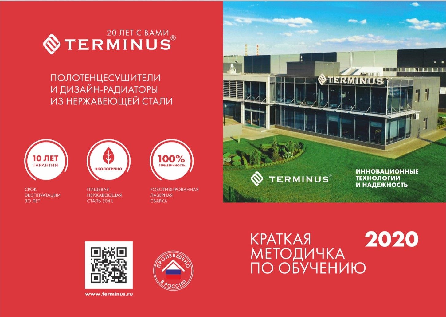 Мы подготовили методическое, обучающее пособие "Методичка 2020", предназначенное для обучения сотрудников отдела продаж. В данном издании Вы найдёте информацию о компании "Терминус", уникальных технологиях производства, дополнительных опциях и наших преимуществах, основных аргументах продаж электрических и водяных моделей, типах подключения и комплектации, а также пособие по определению потребностей конечного потребителя при выборе полотенцесушителя.
