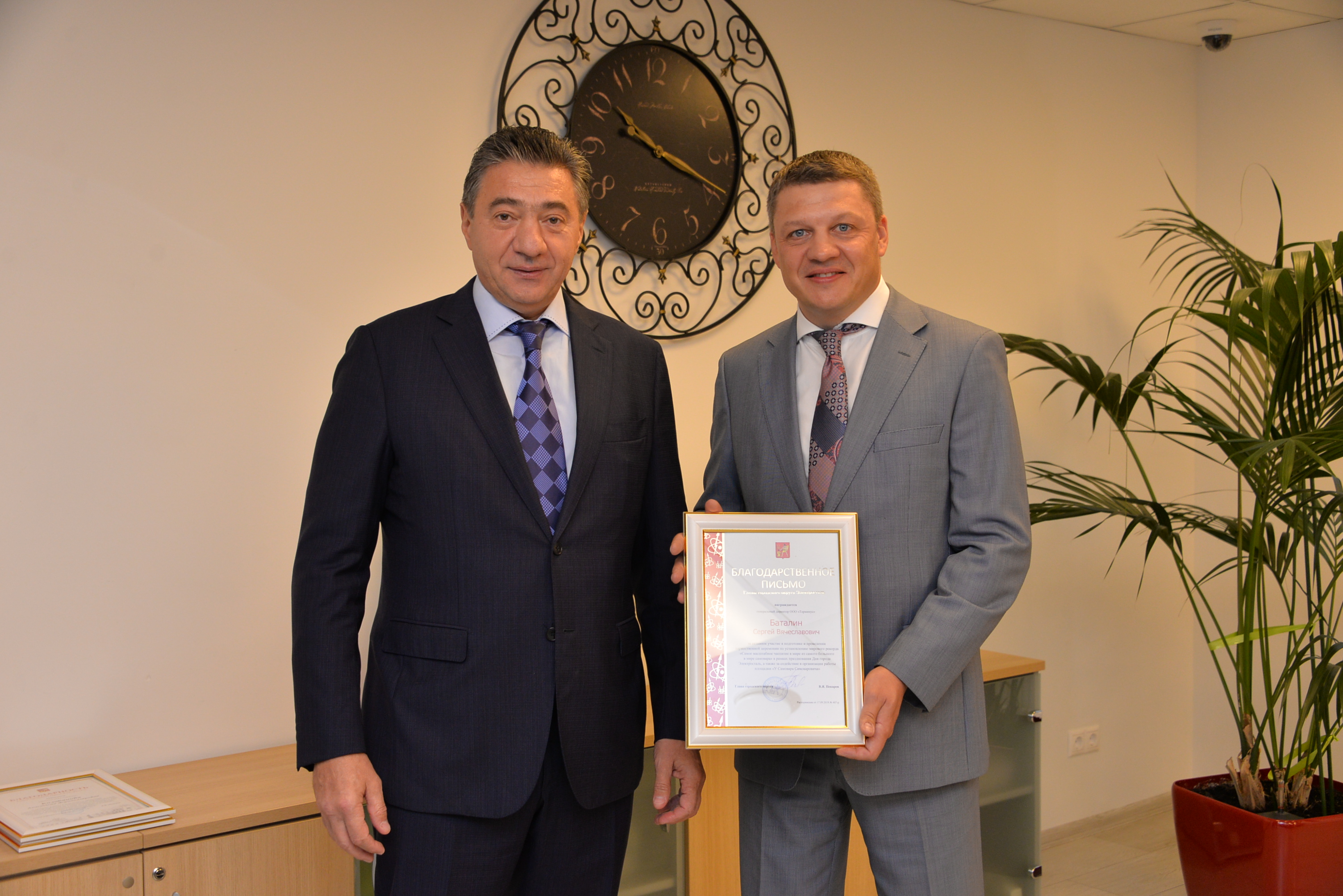 Во время визита Глава города выразил благодарность коллективу и руководству компании "Терминус" за помощь в благоустройстве города и регулярное участие в мероприятиях, проводимых городскими властями.